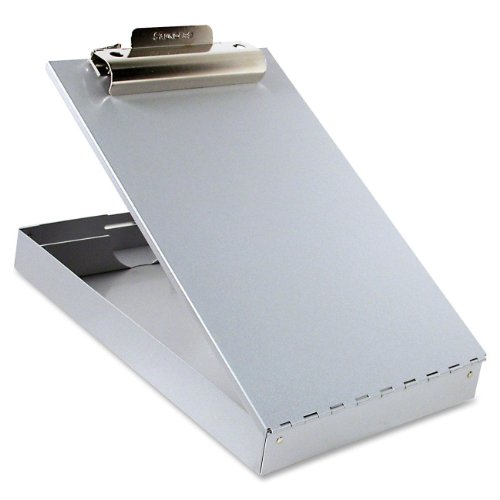 With its heavy-duty aluminum construction and weather-resistant lacquer finish, the Saunders contractor's clipboard provides a durable, ideal writing surface while on the job site. The strong 6-inch clip is designed to securely hold 8-1/2-by-12-inch forms, and the 1-1/2-inch-deep compartment can store notebooks, additional forms, documents, pens, and more. Its auxiliary clip will keep papers from flapping in the wind.