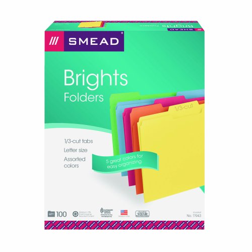 Buy Now Smead 1/3-Cut File Folders, Letter Size, Primary Assorted Colors, 100 Per Box (11943) from Amazon