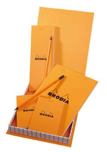 The Rhodia Box Essential Orange(4 Punched Pads + 2 Pencils) . This Rhodia Treasure Box is deceptively simple! Under the cover of one of the famous orange pads are hidden 4 pads of various sizes and 2 Rhodiapencils. Its fun. Its practical, its gifty # Check other Rhodia Notepad from Rhodia Pads. ADDITIONAL INFO: * Genuine Product from Rhodia Pads. Buy from Authorized Major dealer only , with confidence * Brand New Product. Guaranteed for quality.