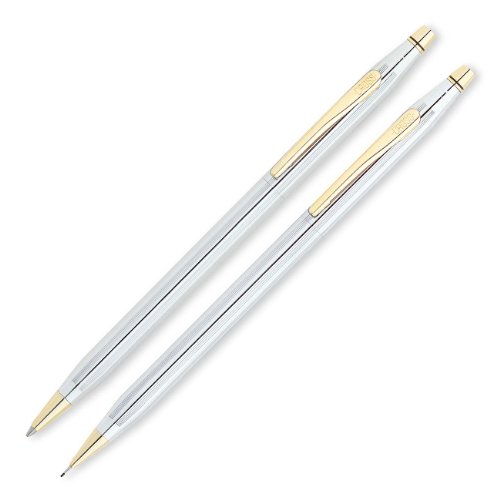 Classic Century Medalist Pen and Pencil Set. The stylish combination of polished chrome and 23 karat gold plated appointments makes the Classic Century ball-point pen and 0.5mm pencil set a timeless statement for those with a busy schedule. An American classic-since 1946. An icon of mid-century modern design, this is the Cross pen everyone knows and loves. We may have come a long way since then but this nostalgic favorite spans sixty years of poems and letters, good wishes and thank you's.